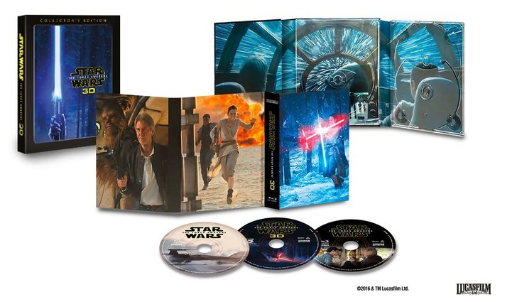 Tuore julkaisu sisältää kaikki alkuperäiset ekstrat (reilut puolitoista tuntia), paketin uusia (noin 40 minuuttia), elokuvan tavallisena ja 3D-versiona sekä ohjaaja-käsikirjoittaja JJ Abramsin kommenttiraidan. Ei sekään jää historiaan kaikkien aikojen ruhtinaallisimpana kotijulkaisuna, mutta ajaa hyvin asiansa esimerkiksi trilogiaboksia odotellessa. Tämä on The Force Awakensin kahdesta br-julkaisusta ”se oikea” – riippumatta siitä, tekeekö katsoja otsikossa mainittavalla 3D-levyllä mitään (minultakin puuttuvat lasit, joten en voi sitä nyt arvioida).